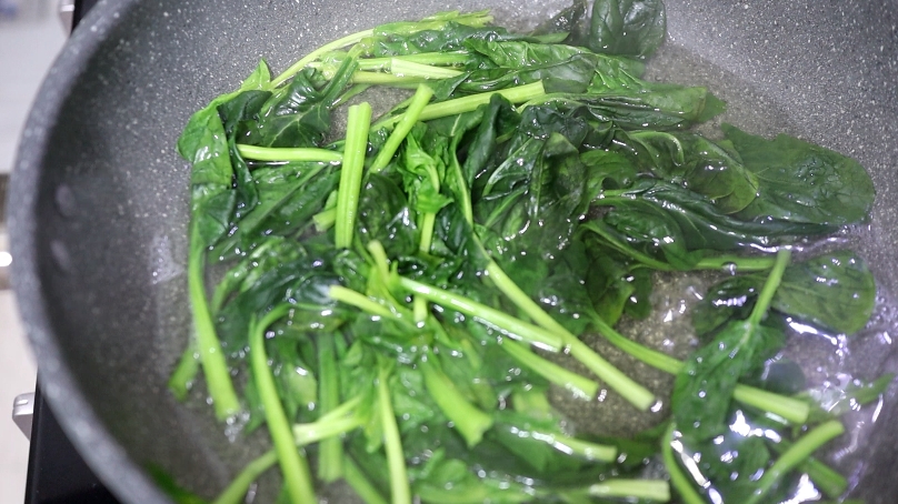 4. 시금치의 물기를 짜서 접시에 담아주세요