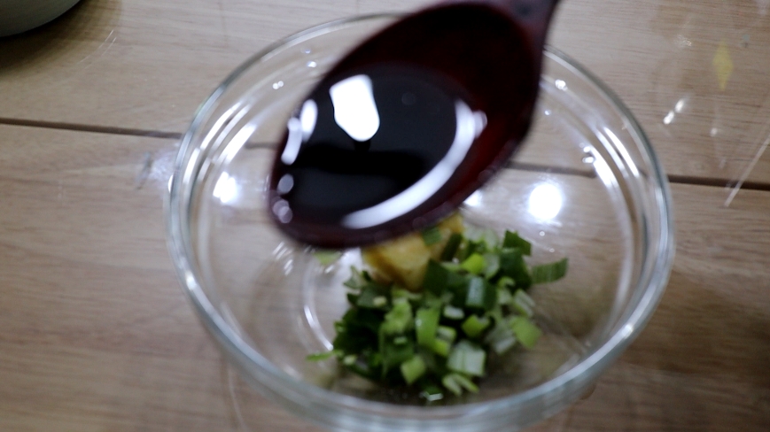 국간장 1큰술, 양조간장 1큰술, 매실청 1큰술, 고추가루 반큰술, 설탕 반큰술, 참기름, 깨소금