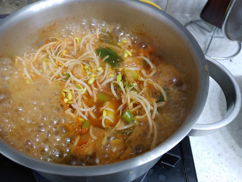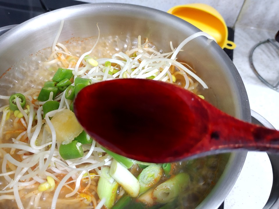 4. 콩나물 김치국을 쎈불로 끓여주시다가 국간장 1.5큰술로 간을 맞춰주시면 완성입니다!