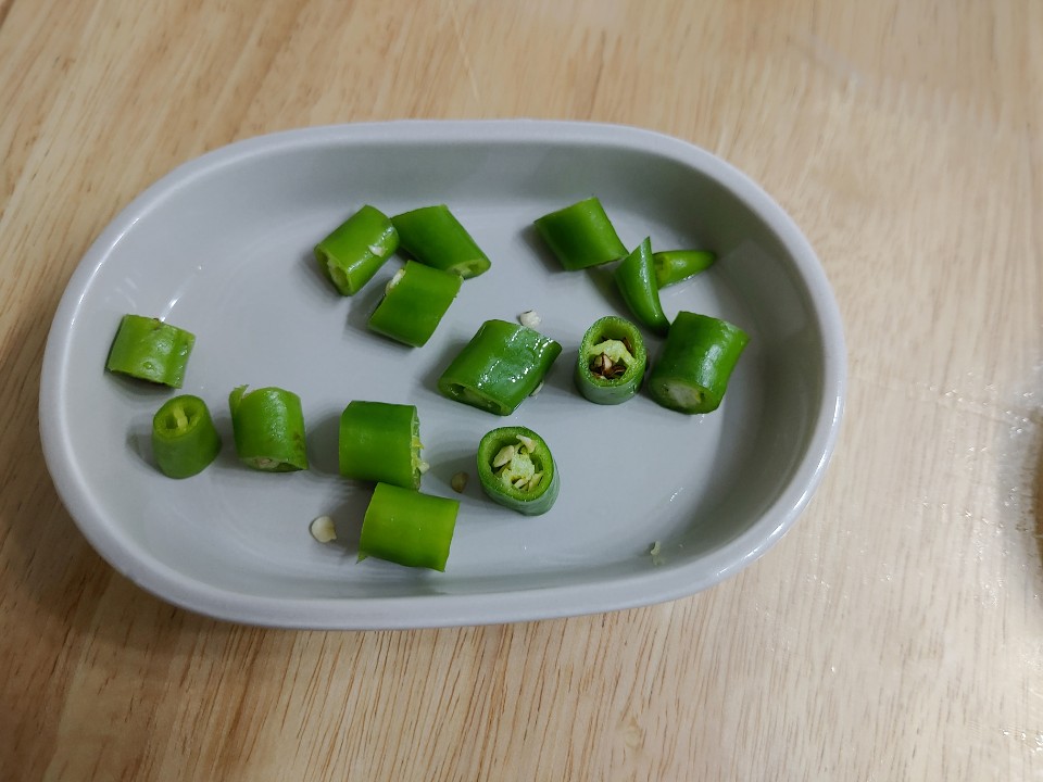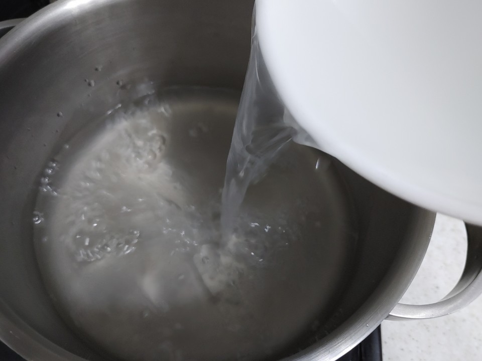 청양고추 2개와 대파 1대, 다진마늘 1/2큰술도 적당한 크기로 잘라서 미리 준비해주시구요~ 백종원 아저씨의 콩나물김치국 꿀팁 1번은 쌀뜨물을 사용하는 거에요~ 쌀뜨물을 사용해서 더욱 담백하고 깊은 시원한 맛을 내는것 같아요^^