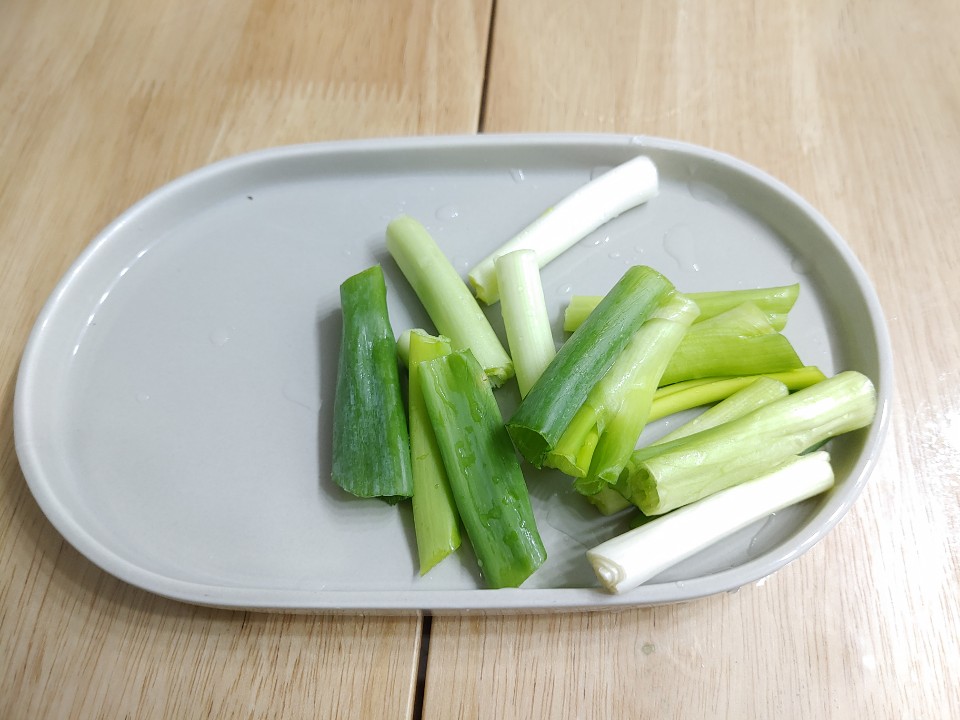 2. 대파와 생강, 고추는 적당한 크기로 잘라서 준비해 주세요. 대파와 생강은 닭고기와 함께 끓이다가 건져내 줘야하기 때문에 너무 잘게 자르지 말아주세요