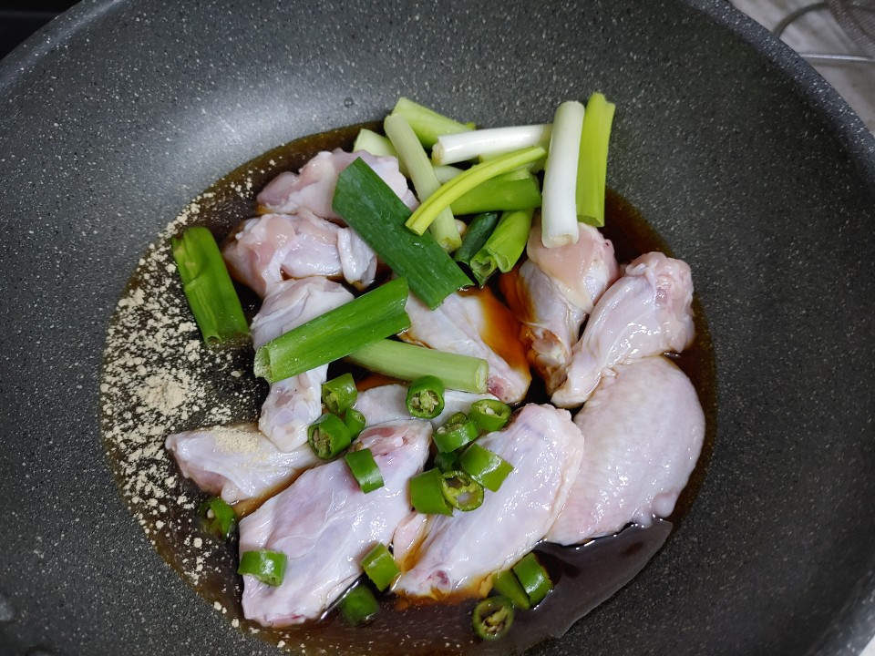 닭날개와 닭봉은 깨끗한 물로 씻어서 우유에 30분 정도 담궈주시면 비릿내를 잡아주는데 도움이 됩니다.